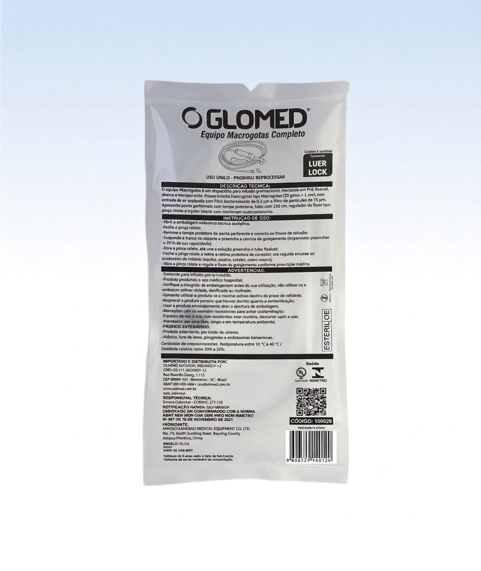O Equipo Macrogotas Luer Lock de Plástico Completo Unidade é indicado para administração de soluções por via intravenosa, auxiliando no controle e condução de fluidos.