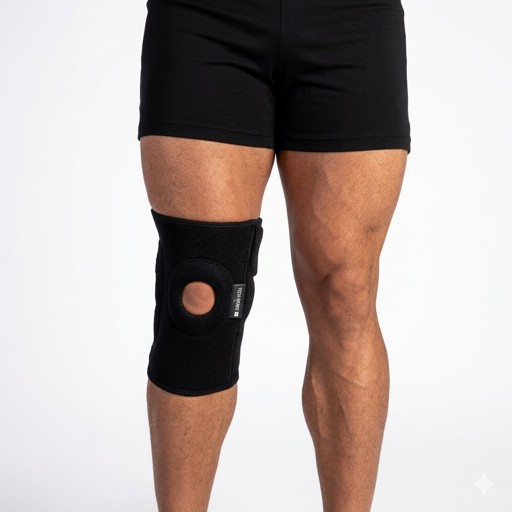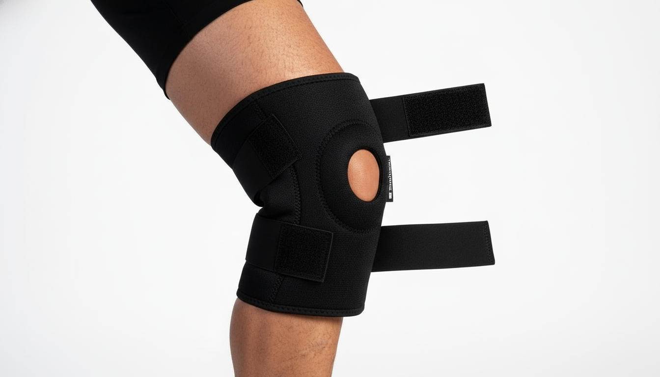 Pode ser utilizada em situações que exigem suporte do joelho, auxiliando na rotina de cuidados e bem-estar.