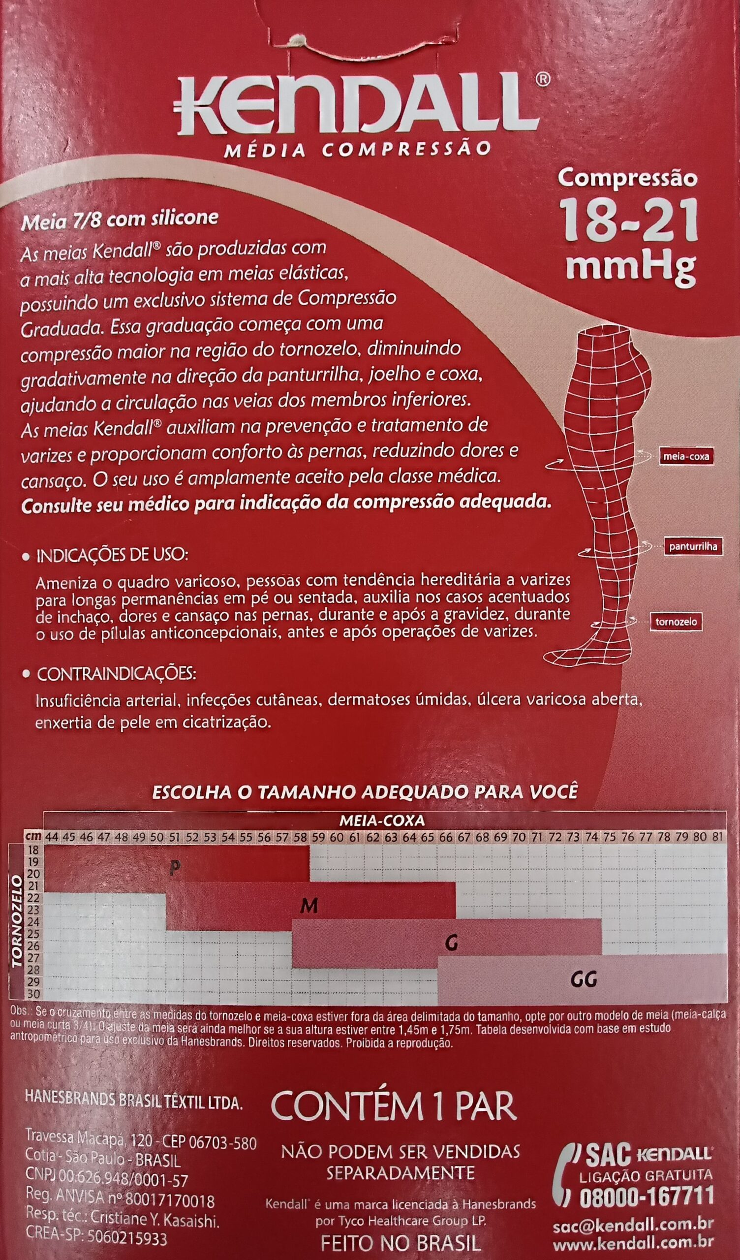 A Meia Kendall Médica Compressão 7/8 é desenvolvida com alta tecnologia em meias elásticas, contando com um exclusivo sistema de compressão graduada. Essa compressão é maior na região do tornozelo e diminui gradativamente em direção à panturrilha, joelho e coxa, auxiliando a circulação sanguínea nos membros inferiores.